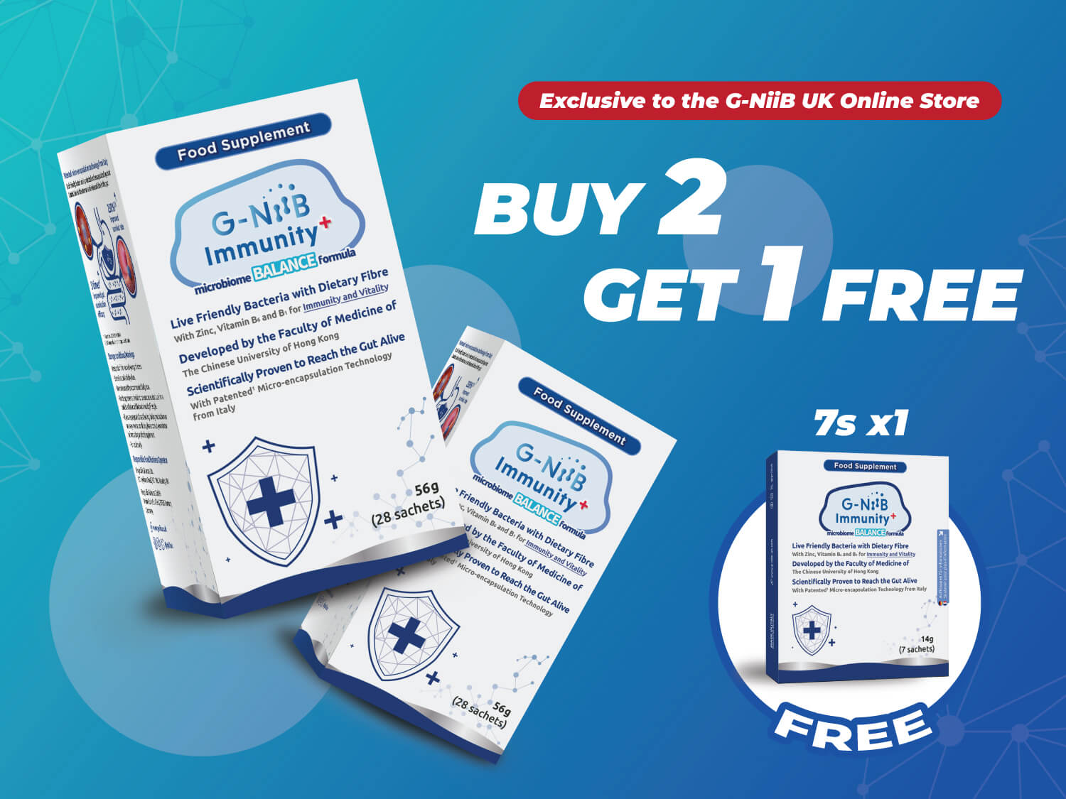 Purchase two boxes of G-NiiB Immunity+ (SIM01) 28-day use and receive one box of G-NiiB Immunity+ (SIM01) 7-day use for free. Offer available while stocks last.